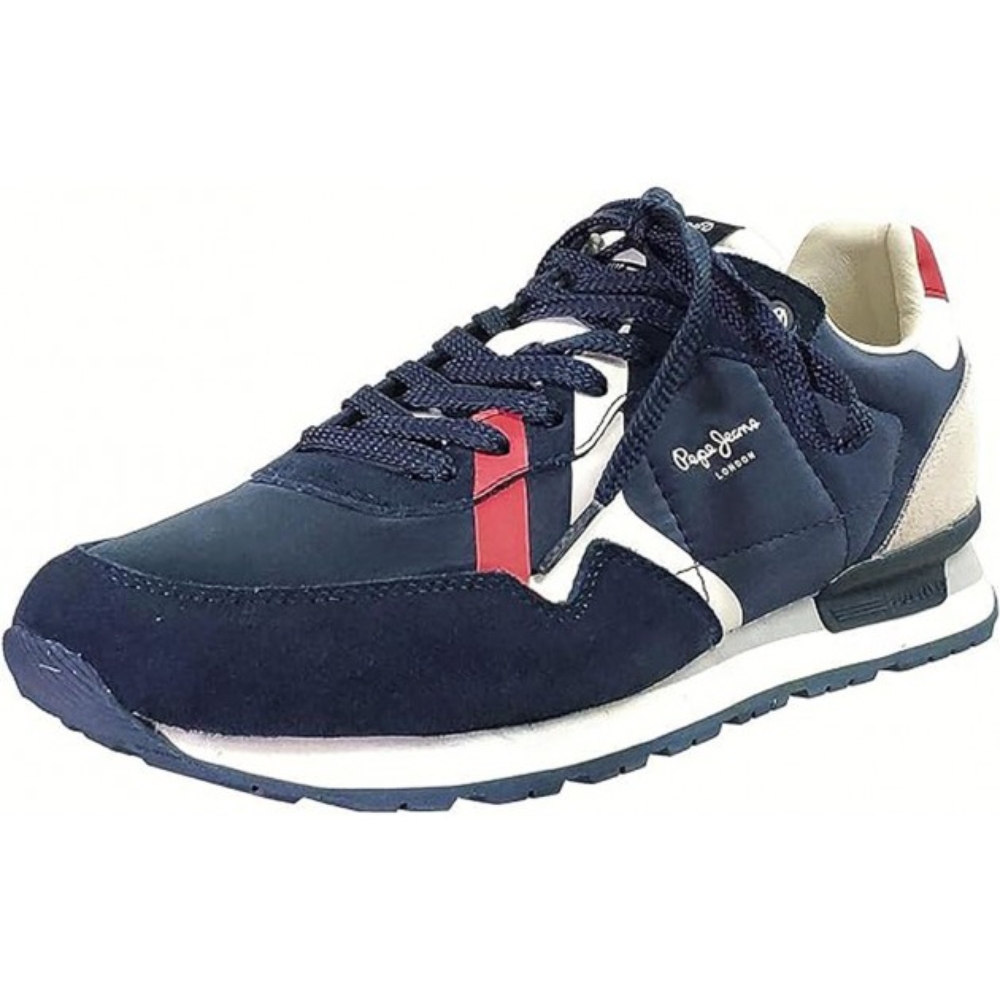 DEPORTIVA PEPE JEANS BRIT ROAD M PMS40007 EN COLOR NAVY. La deportiva para hombre de la reconocida marca Pepe Jeans es una pieza de excelencia en el mundo del calzado. Con un diseño imponente y moderno, este modelo, conocido como "Brit Road M", se presenta en un atractivo color navy que añade un toque de elegancia a cualquier atuendo. Fabricada con materiales de primera calidad, su exterior está confeccionado en cuero, lo que garantiza durabilidad y resistencia ante el desgaste cotidiano. El revestimiento interior, también de cuero, proporciona una sensación de confort y suavidad al calzarlas, asegurando una experiencia placentera en cada paso. La suela de caucho de alta calidad no solo ofrece una excelente tracción y estabilidad, sino que también asegura una pisada firme y segura en cualquier tipo de terreno, ya sea en la ciudad o en actividades al aire libre. El cierre mediante cordones no solo añade un toque deportivo al diseño, sino que también permite un ajuste personalizado para una comodidad óptima durante todo el día. Con la deportiva Pepe Jeans "Brit Road M", no solo estarás luciendo un estilo contemporáneo y sofisticado, sino que también disfrutarás de la calidad y la comodidad que solo una marca de renombre puede ofrecer. Perfectas para cualquier ocasión, estas deportivas son una elección ideal para el hombre moderno que busca combinar moda y funcionalidad en cada paso que da.