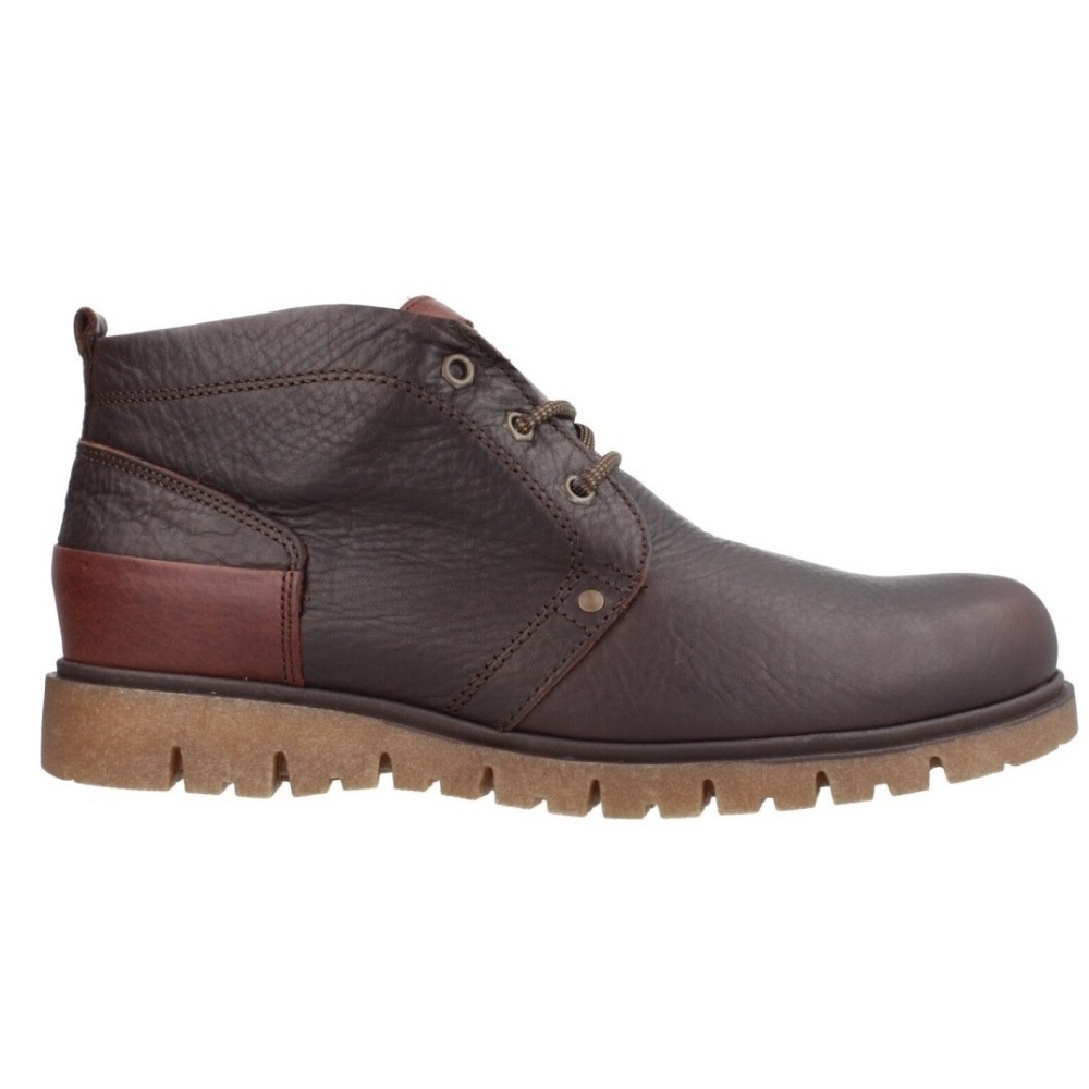 Bota de hombre Pitillos en piel engrasada 100%, con la garantía de la mejor fabricación española. Su diseño robusto y atemporal se combina con un piso crepé antideslizante, que proporciona seguridad y estabilidad en cada paso, incluso en superficies resbaladizas.