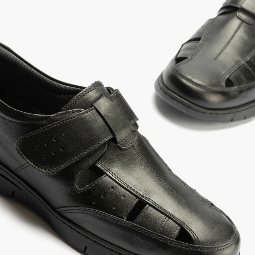 Si buscas confort y elegancia, la Sandalia cangrejera piel en color negro es tu mejor opción. Destaca por su material de piel y plantilla extraíble, facilitando la higiene diaria.