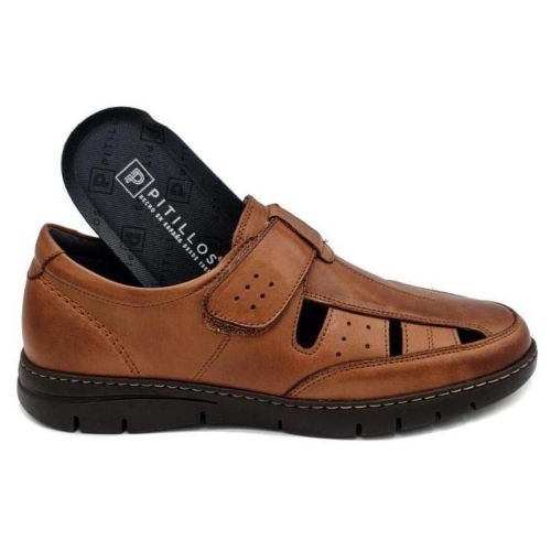 Sandalia de piel de la marca Pitillos de gran calidad fabricada en España para hombre. Plantilla extraible. Color marron