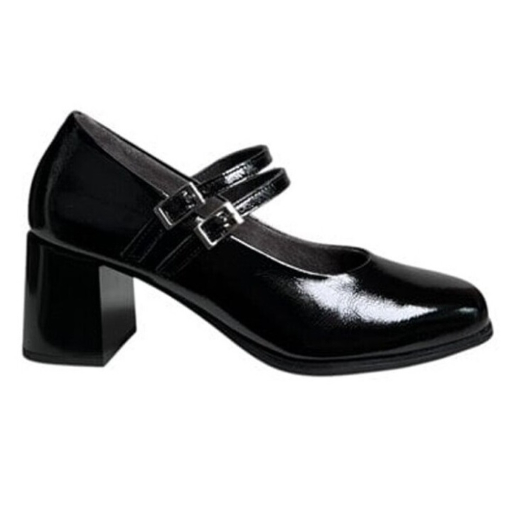 Merceditas de charol con puntera cuadrada y tacón cómodo de 6,5 cm. Con tira doble y hebilla, su plantilla extraíble y suela antideslizante garantizan confort diario. Un diseño clásico y atemporal, fabricado en España, que combina elegancia y durabilidad para acompañarte en cualquier ocasión.