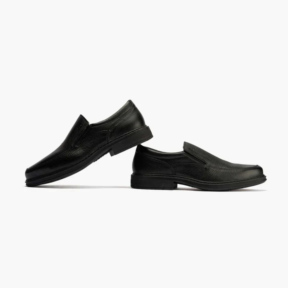 Zapato estilo mocasin de piel para hombre. Fabricado en España con piel de gran calidad, suela de goma con tacon tacón bajo, ideal para llevarlos durante largas horas. Color negro
