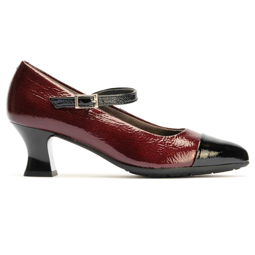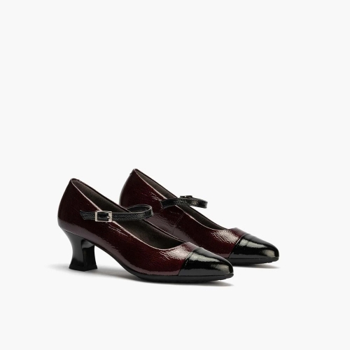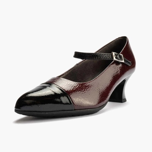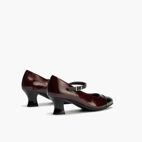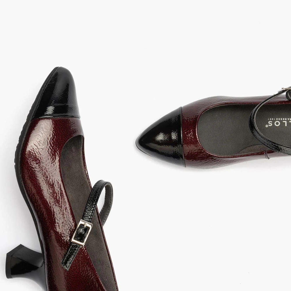 Zapatos de salón con tacón geométrico Pitillos 10155 para mujer en color burdeos. Características: zapato de tacón con cierre de hebilla,  altura de tacón 5 cm, piso de goma termoplástica, exterior charol e interior intech transpirable hipoalérgico.