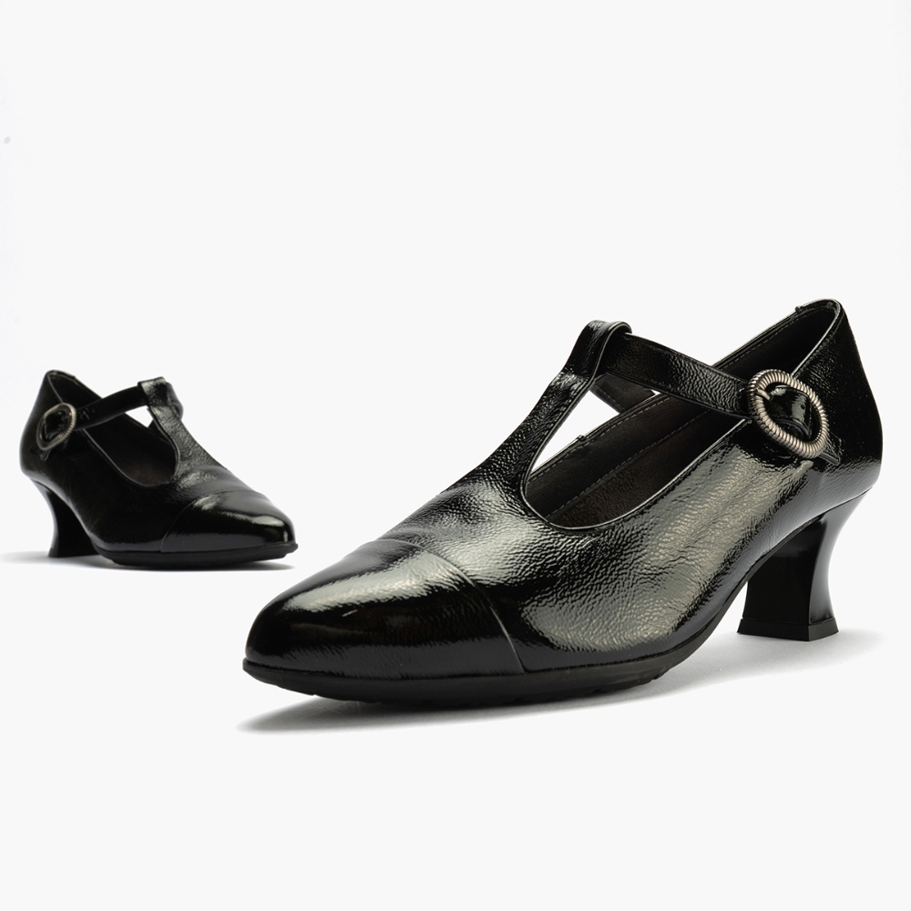 Zapato con tacon y hebilla de la marca Pitillos para mujer. Fabricado en piel de gran calidad con detalle de puntera. Color negro