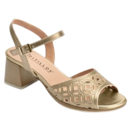 Zapato de pitillos con tacón bajo para mujer. Fabricado en España con piel de gran calidad. Color oro