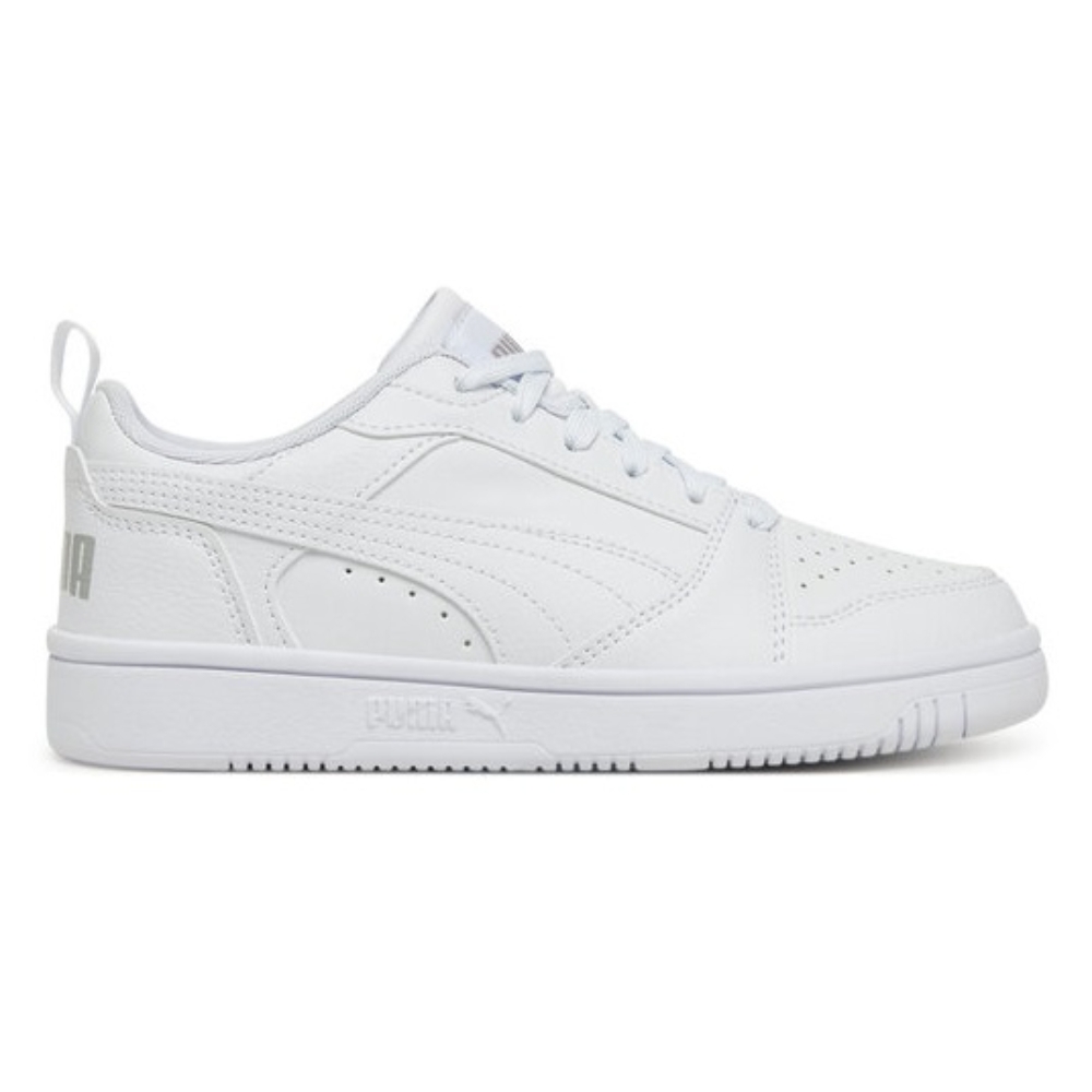 Zapatillas de la marca PUMA, modelo Puma Rebound V6 393833 03. Exterior textil técnico color blanco-gris. Cierre con cordones.