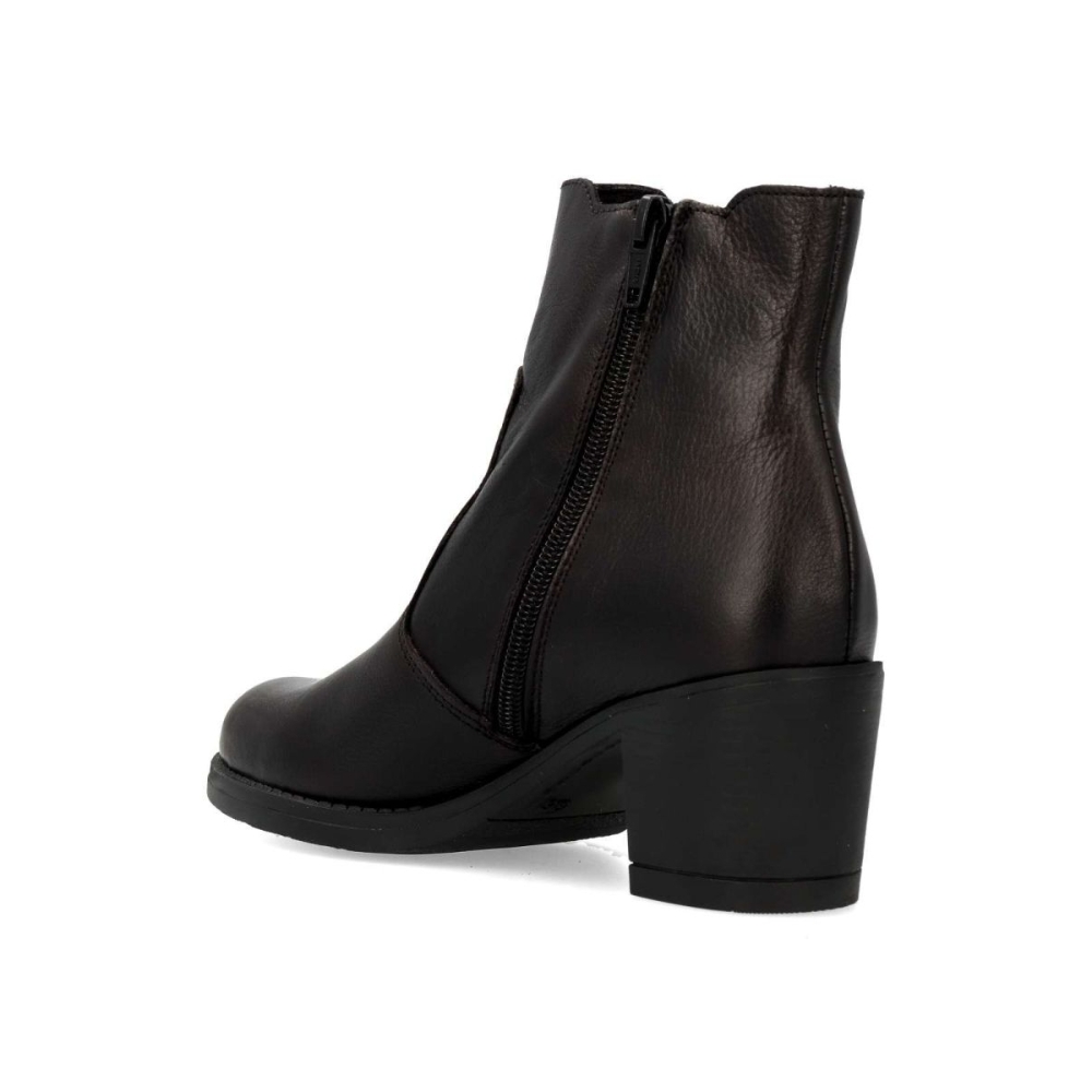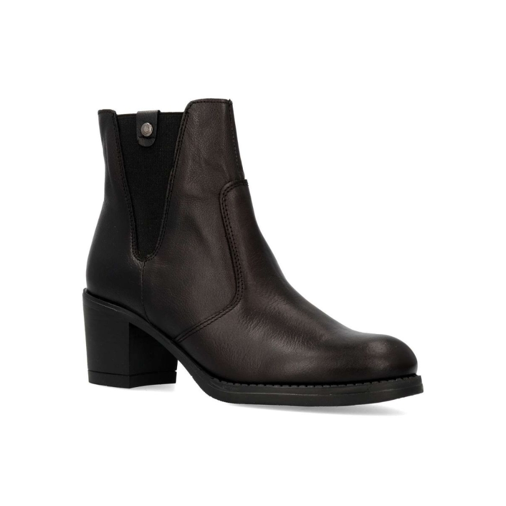 Botines de mujer con elástico y cierre de cremallera. Modelo cómodo, fabricado en piel, con suela de goma. Plantilla de piel acolchada. Color negro. Estilo chic y contemporáneo que dan un toque de glamour a cualquier look.