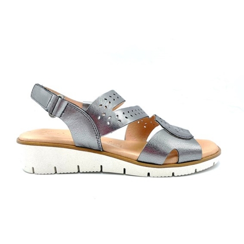 Sandalia plana de piel confort con plantilla de piel y gel para una mayor amortiguación. Color estaño