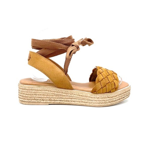 Sandalia de la marca Rivera con plataforma. Fabricada en piel de gran calidad con plantilla de gel extra cómoda. Color whisky