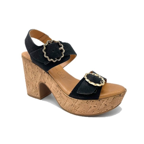 Sandalia con tacón y plataforma, fabricada en piel de gran calidad con plantilla de gel extracómoda. Color negro