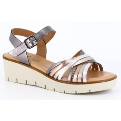 Sandalia de la marca Rivera para mujer. Fabricada en piel de gran calidad con plantilla de gel acolchada para una mayor comodidad en cada pisada. Color plata