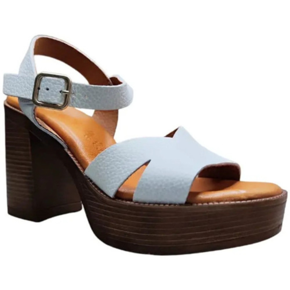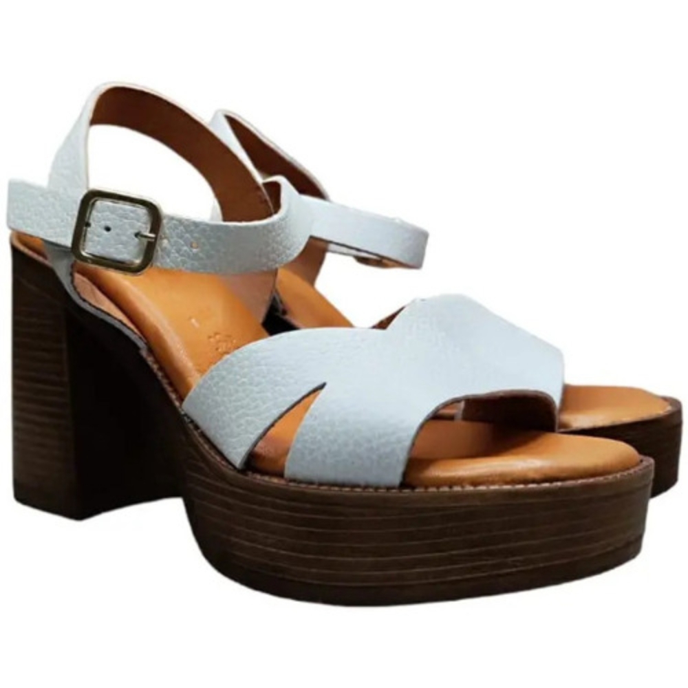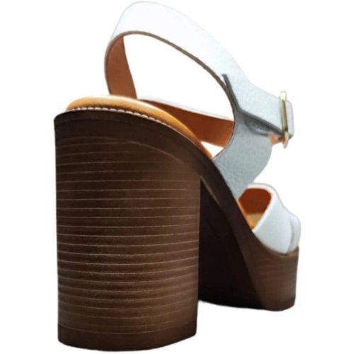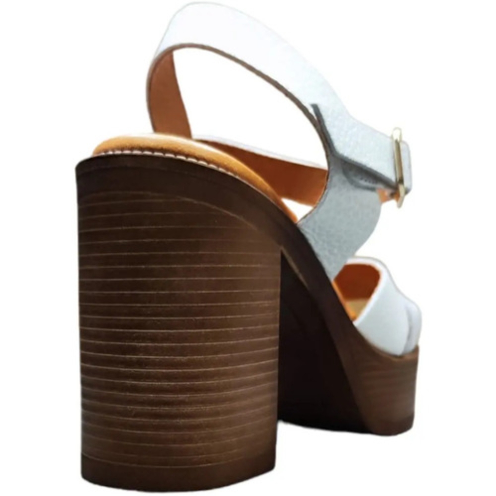 Sandalia de la marca Rivera con tacón alto y plataforma. Fabricada en piel de gran calidad con plantilla de gel acolchada. Color blanco