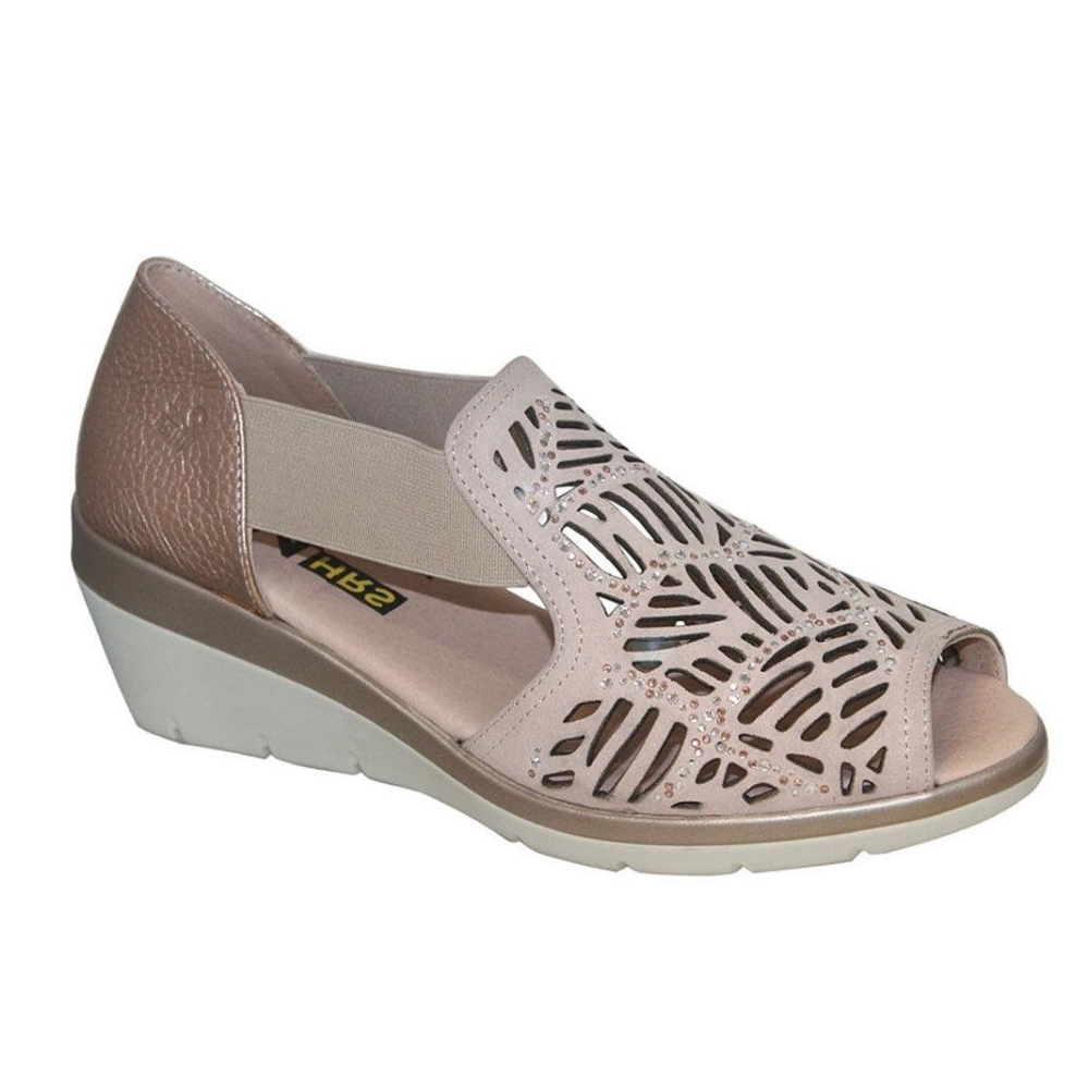 Sandalia tipo cagrejera confort de la marca 24 horas para mujer. Fabricada en piel de gran calidad con gomas elásticas para un mayor ajuste y sujección del pie. Color marron