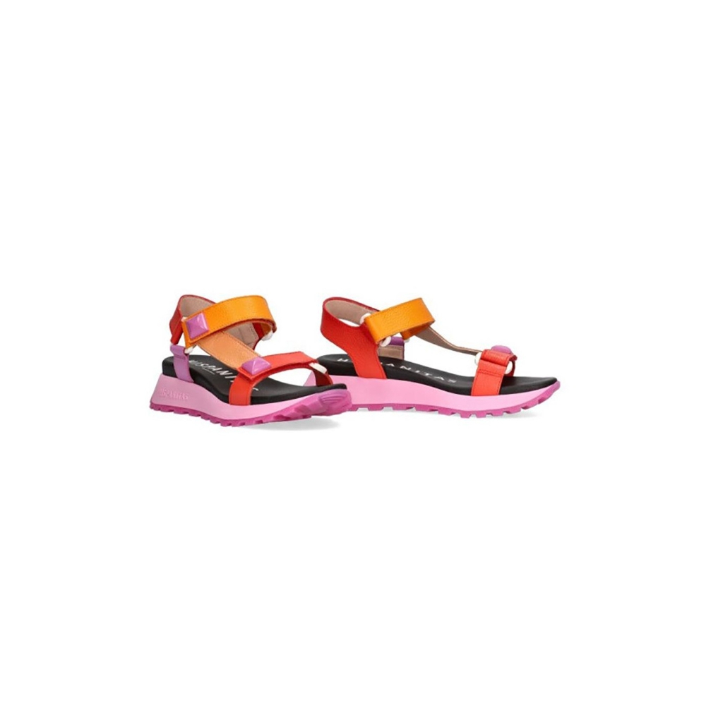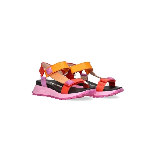 Sandalia estilo confort con velcros de la marca Hispanitas para mujer. Fabricada en España con piel de gran calidad. Color mandarina