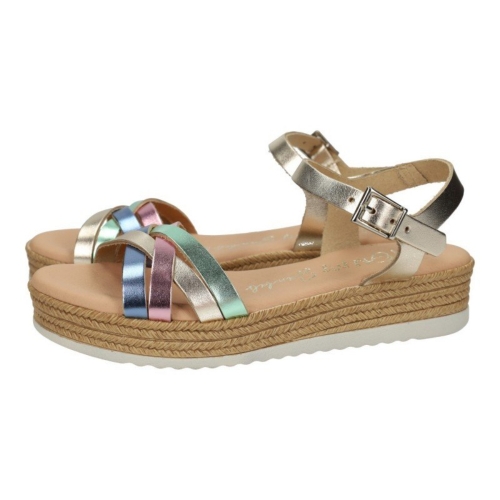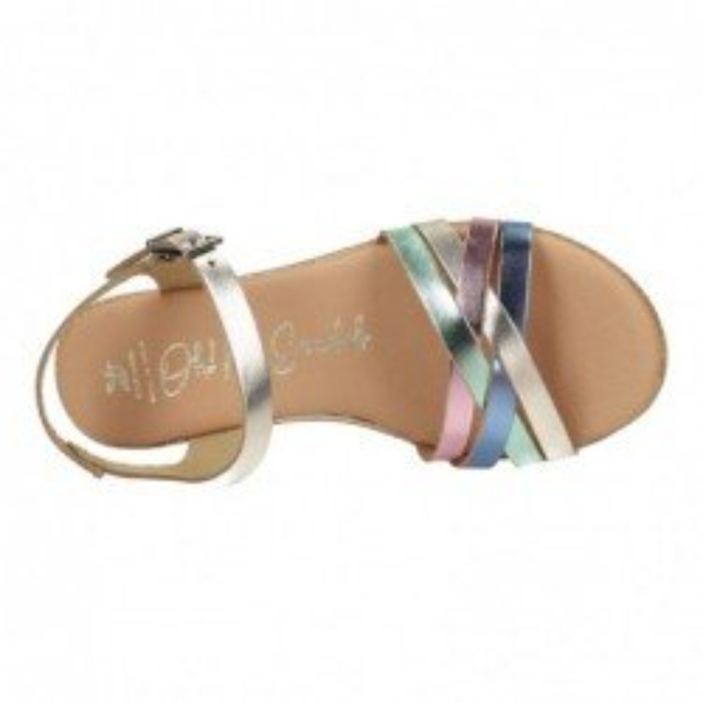 Sandalia con plantilla de gel de la marca Rivera para chica. Fabricada con piel de gran calidad y materiales ligeros para una mayor comodidad. Color champagne