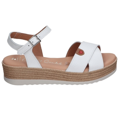 Sandalia con plataforma y plantilla de gel de la marca Rivera para mujer. Fabricada con piel de gran calidad y materiales ligeros para una mayor comodidad. Color blanco