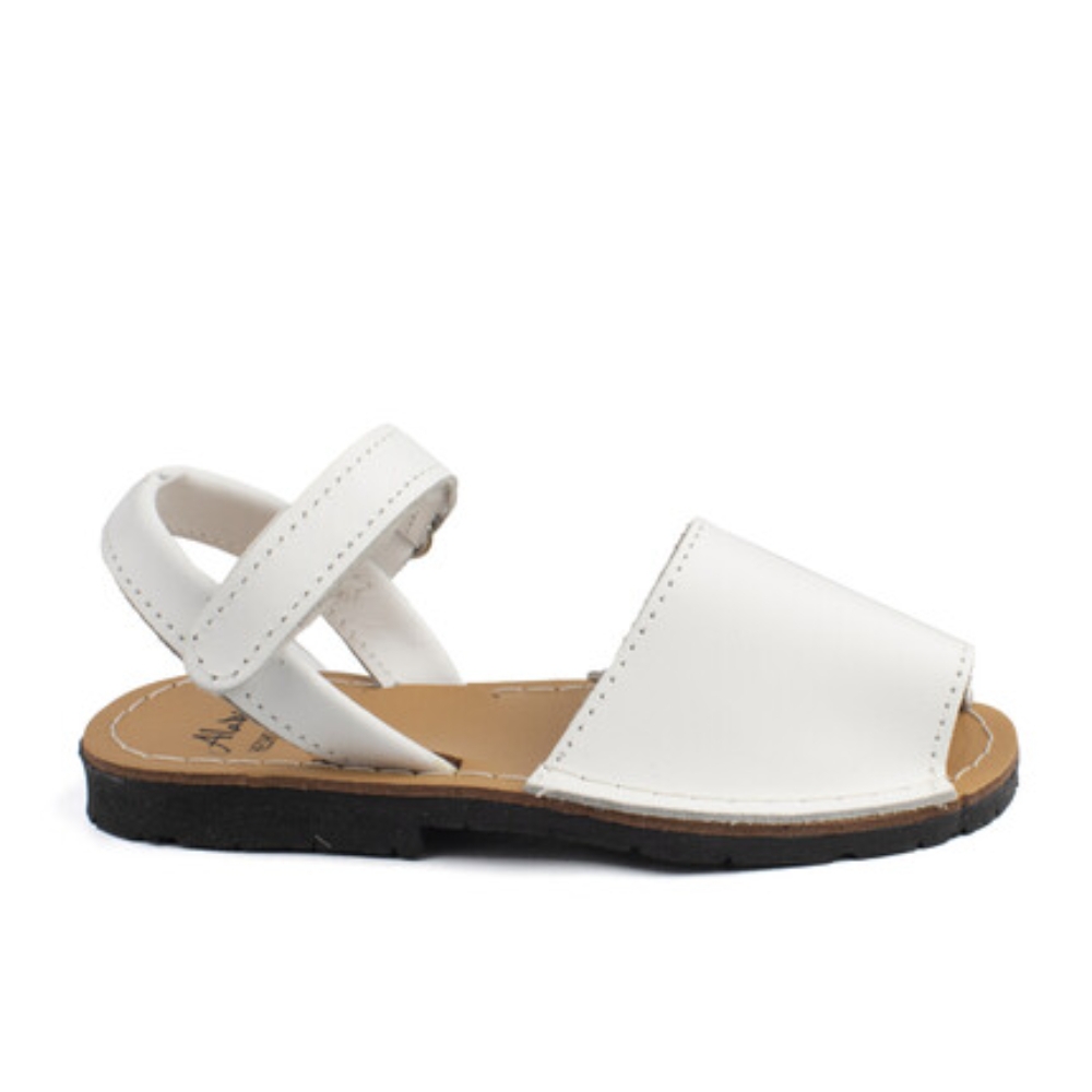 Menorquina con velcro tipo unisex. Faricada en piel, color blanco.
