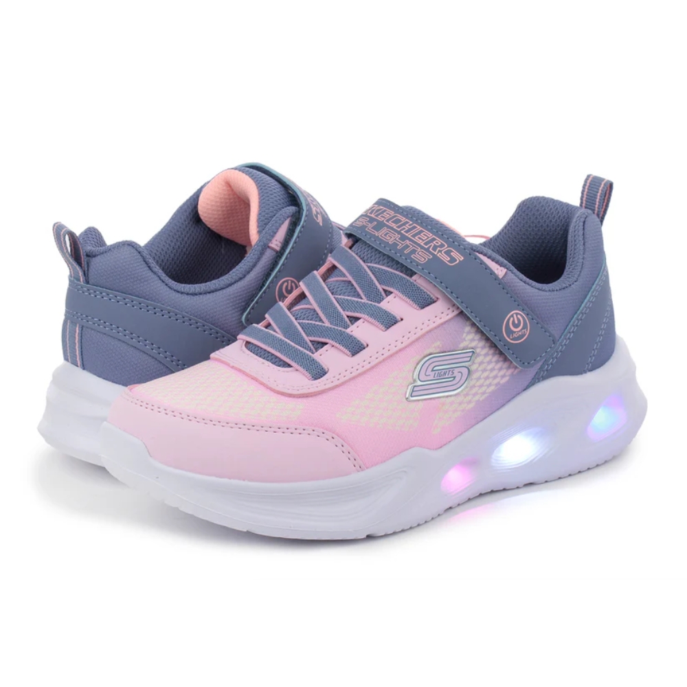 Ilumina tus pasos con estilo deportivo y comodidad con Skechers S-Lights®: Meteor-Lights - Krendox. Este diseño de cordones elásticos tiene una parte superior de malla y material sintético con un cierre adaptativo Skechers para un ajuste personalizado, además de una divertida entresuela iluminada.