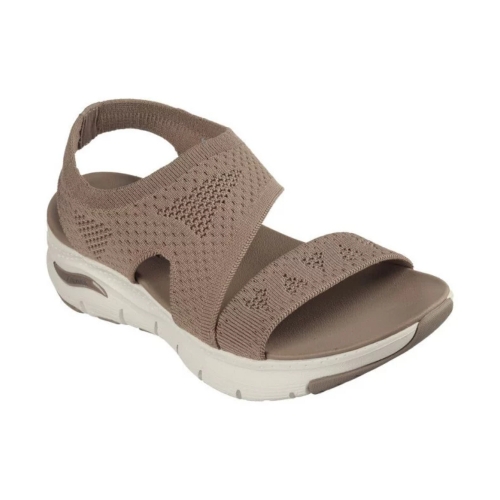 Las sandalias Skechers Arch Fit Brightest Day para mujer en color negro son la combinación perfecta de comodidad y estilo deportivo. Con una parte superior de knit técnico y una suela flexible con tracción, estas sandalias son lavables a máquina y cuentan con un talón de 3,8 cm. La plantilla moldeada patentada Skechers Arch Fit® ofrece un soporte en el arco plantar certificado por podólogos, mientras que el diseño Stretch Fit® con cordones garantiza un ajuste cómodo. Fabricadas con materiales 100 % de origen vegano, estas sandalias son ideales para quienes buscan comodidad y estilo sin comprometer sus valores éticos. ¡Hazte con ellas hoy mismo y disfruta de la comodidad que solo Skechers puede ofrecerte!