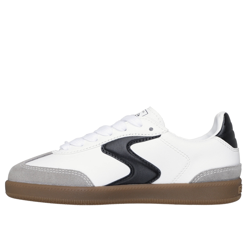 Siente la comodidad de las Skechers Hotshot - Junior Varsity. Este diseño de caña baja con cordones cuenta con una parte superior de material sintético con capas superpuestas de ante y logotipo en S en el lateral, además de una cómoda plantilla con amortiguación.