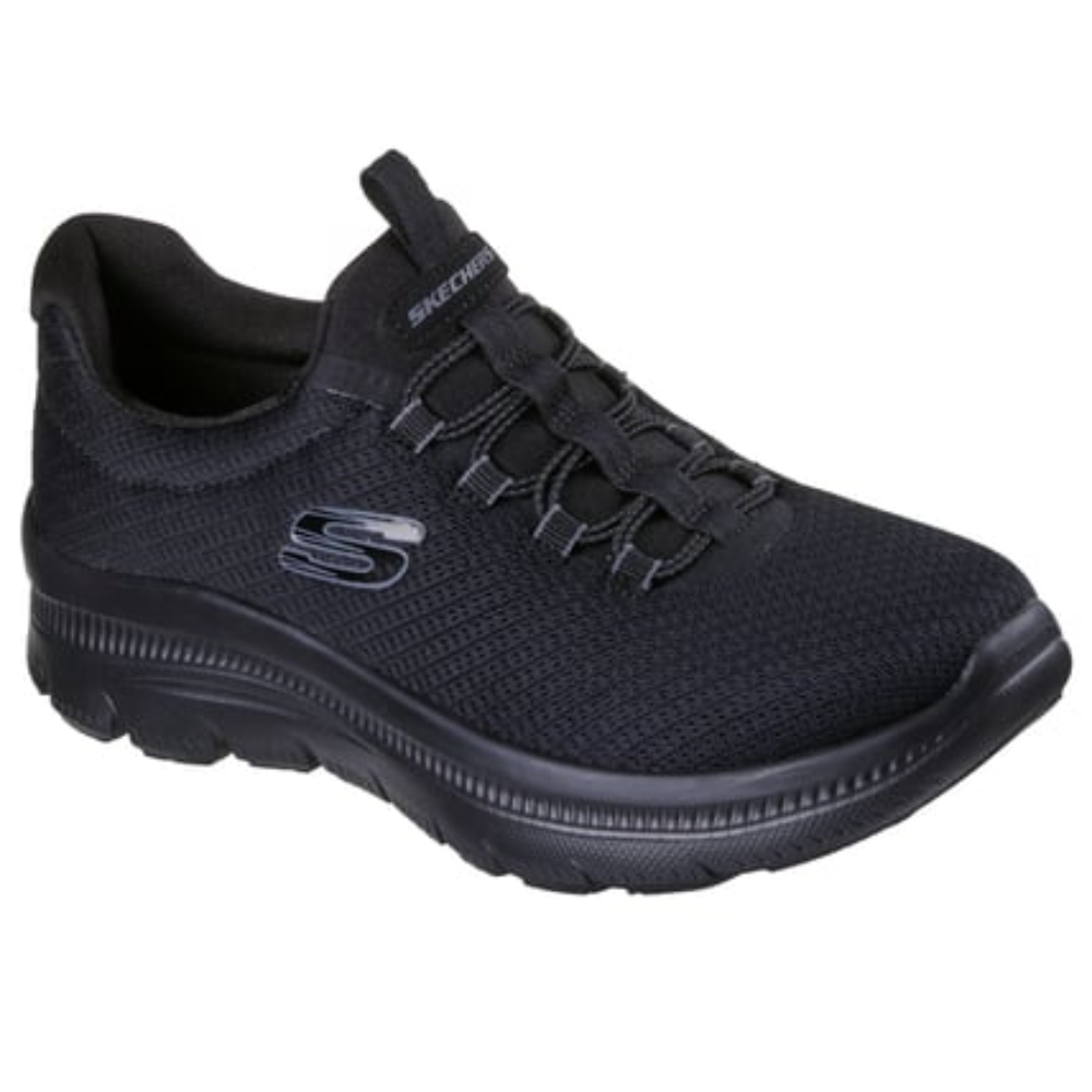 Zapatilla de la marca Skechers con cordon elastico y tejido transpirable y ligero para una mayor comodidad. Color negro
