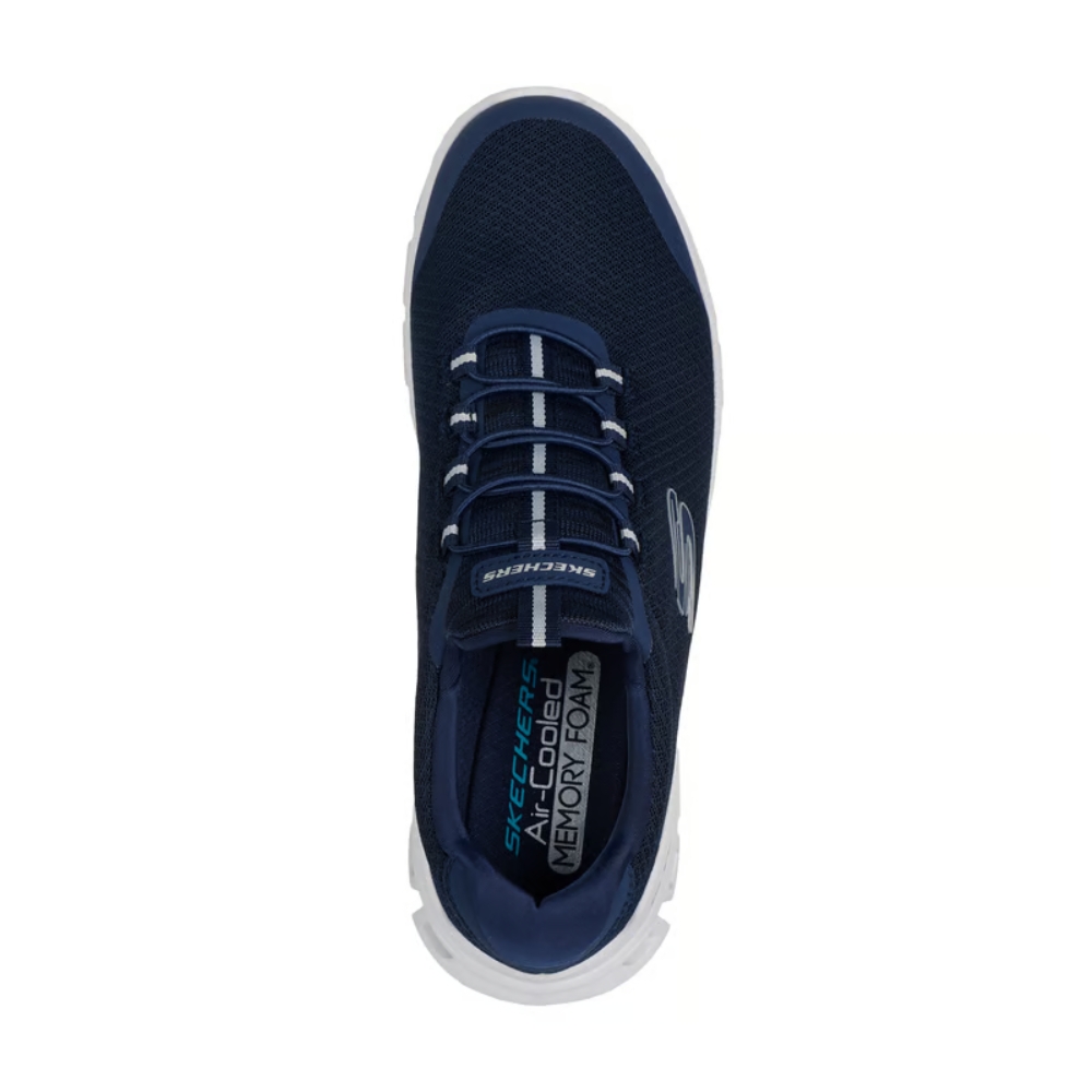 Disfruta de la flexible comodidad de Glide-Step® - Sylo. Estas deportivas veganas con cordones elásticos cuentan con una parte superior de malla y sintética, una cómoda plantilla con amortiguación Skechers Air-Cooled Memory Foam® y una media suela geométrica con amortiguación Glide-Step®.
