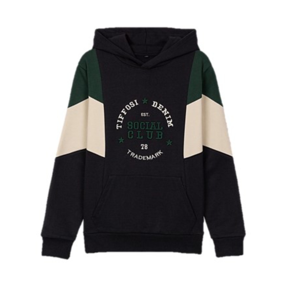 Sudadera con capucha de la marca TIffosi para niño. Color negro, verde y beig