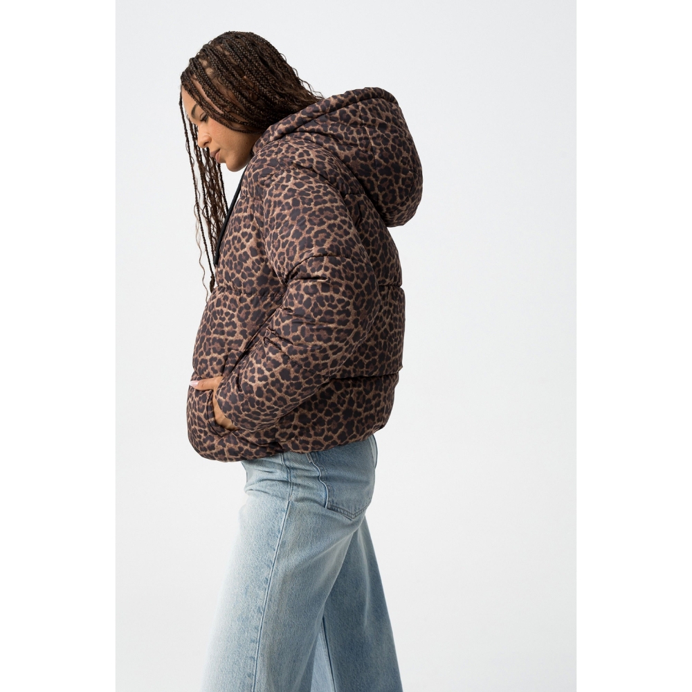 Abrigo relaxed fit acolchado, con dos bolsillos frontales, cierre de cremallera, capucha ajustable con cordón, manga larga y terminaciones elásticas.