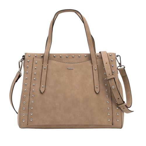 Maleta de ciudad con dos compartimentos y tachuelas. Bolsillo interior. Bandolera ajustable y extraíble. Cierre con cremallera.100% POLYURETHANE
