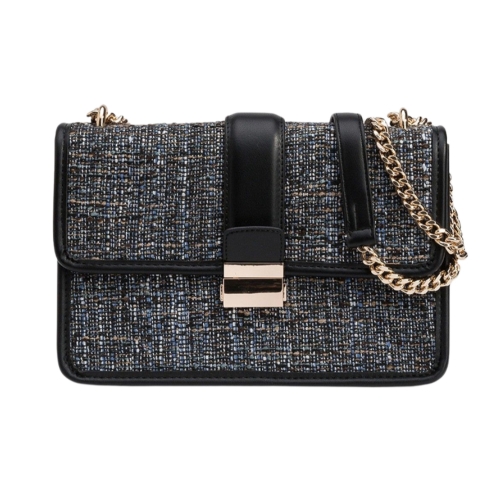 Bolso bandolera de efecto piel combinado con tweed, con solapa y cierre a presión. Correa bandolera de cadena ajustable.85% POLYESTER 15% COTTON