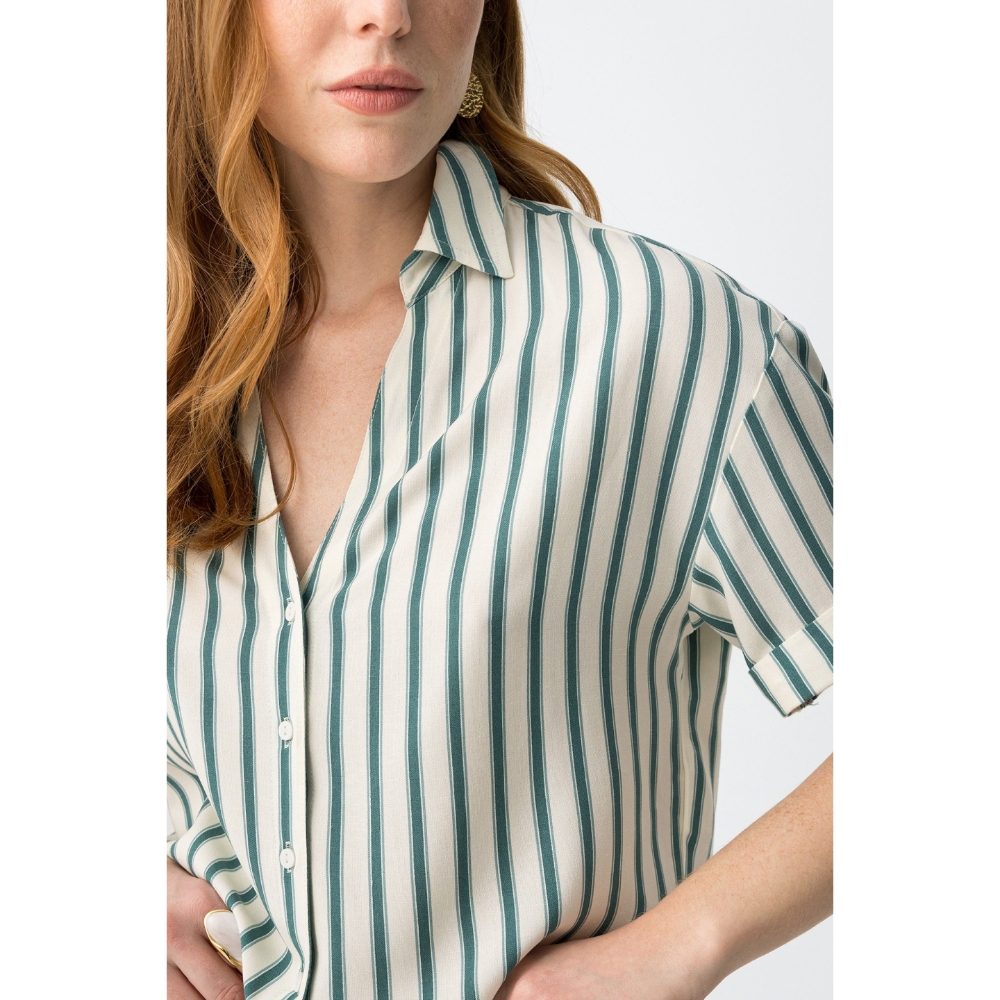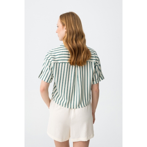 Camisa con corte cropped, manga corta y botones en color crudo, con estilo desenfadado oversize.90% VISCOSE 10% LINEN