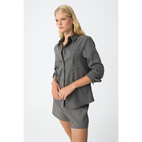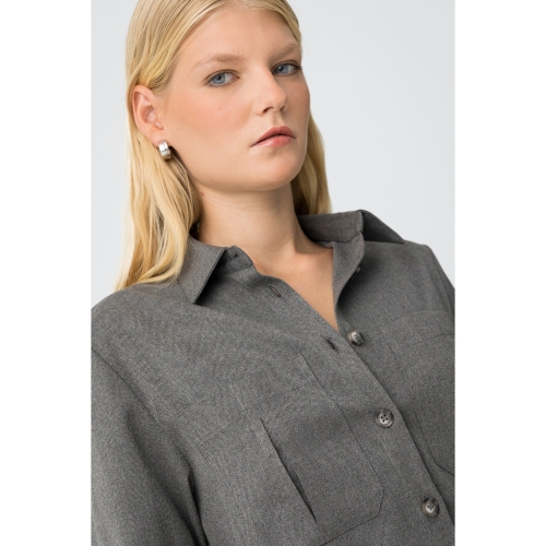 Camisa regular fit con dos bolsillos de parche, apertura frontal y cierre de botones. Cuello y manga larga con botones en los puños.64% POLYESTER 34% VISCOSE 2% ELASTANE