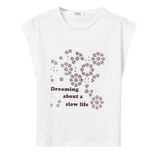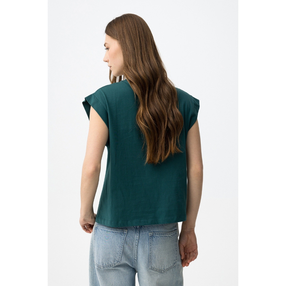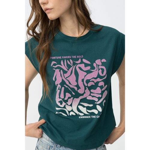 Camiseta verde con diseño gráfico en rosa y blanco. Corte regular y mangas cortas.100% COTTON