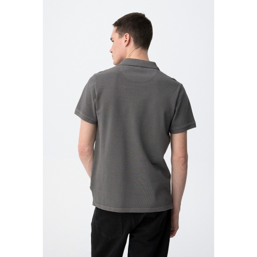 Corte clásico, color gris oscuro, cuello clásico y cierre de dos botones, detalle minimalista en el pecho.100% COTTON