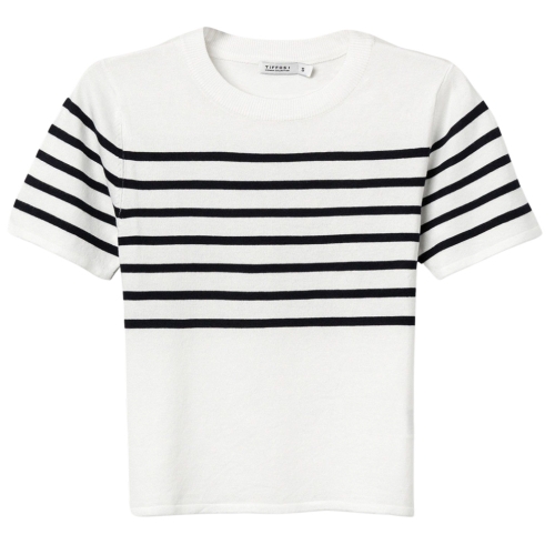 Camiseta de manga corta en gris claro con rayas blancas, corte slim y punto suave.80% VISCOSE 20% POLYAMIDE