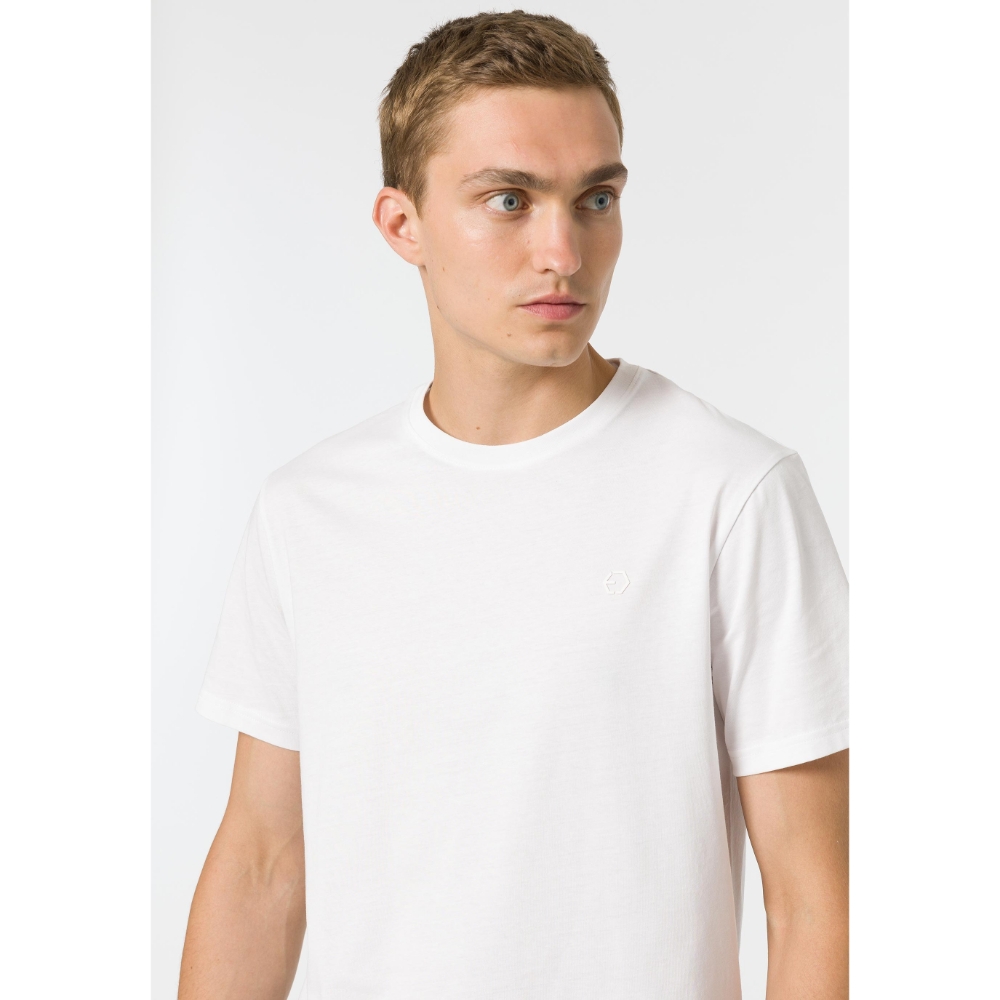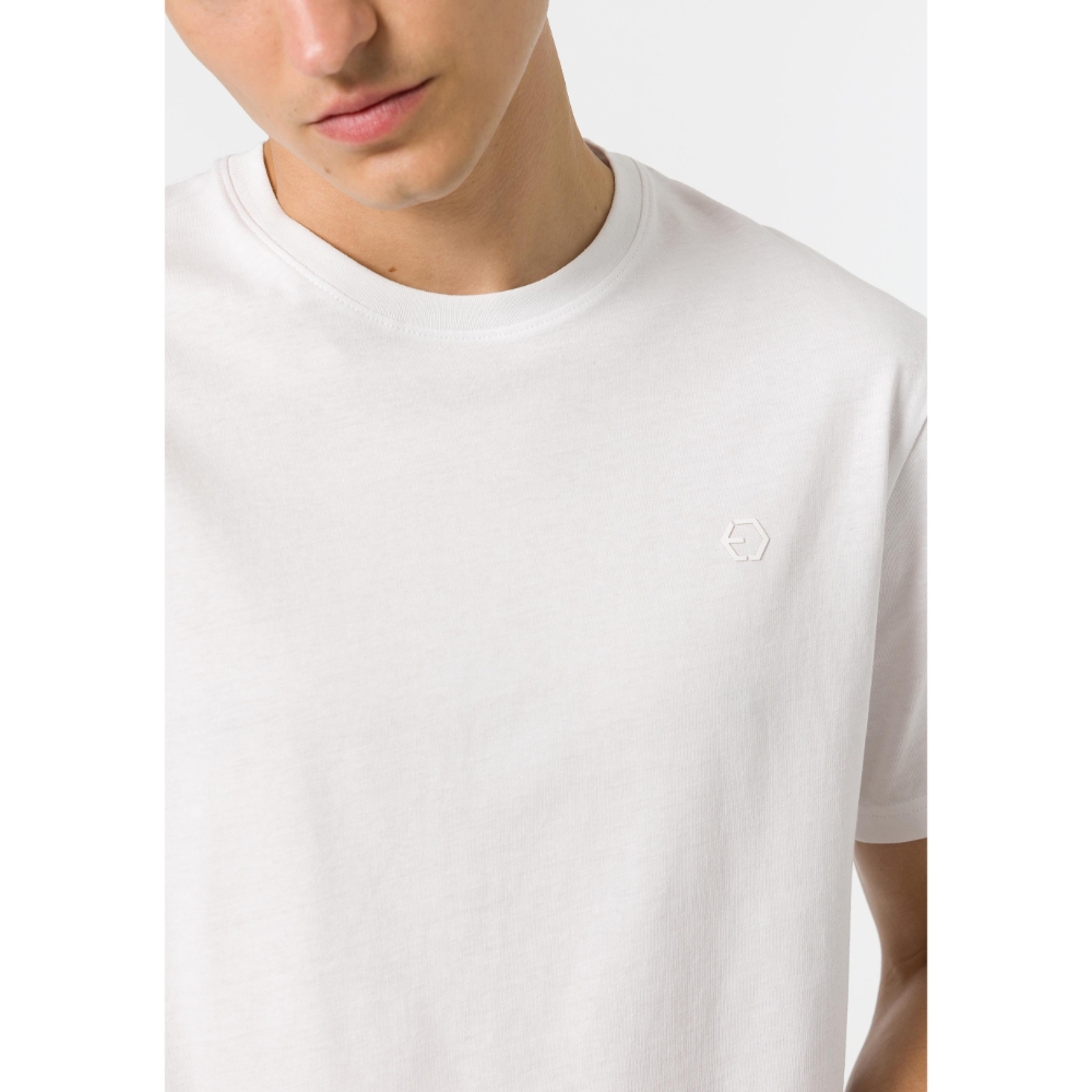 Camiseta regular fit de algodón con detalle en relieve en la parte frontal. Cuello redondo y manga corta.100% COTTON