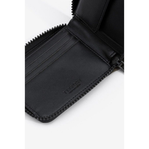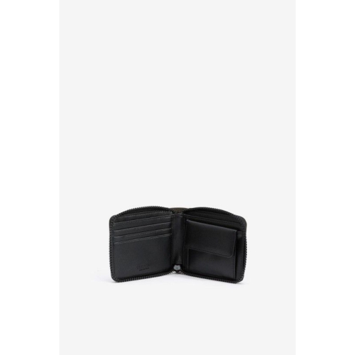 Monedero con compartimento para guardar monedas, espacio para billetes y/o documentación y tres posiciones para tarjetas. Cierre con cremallera.