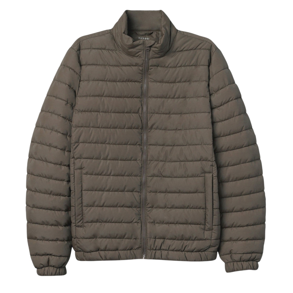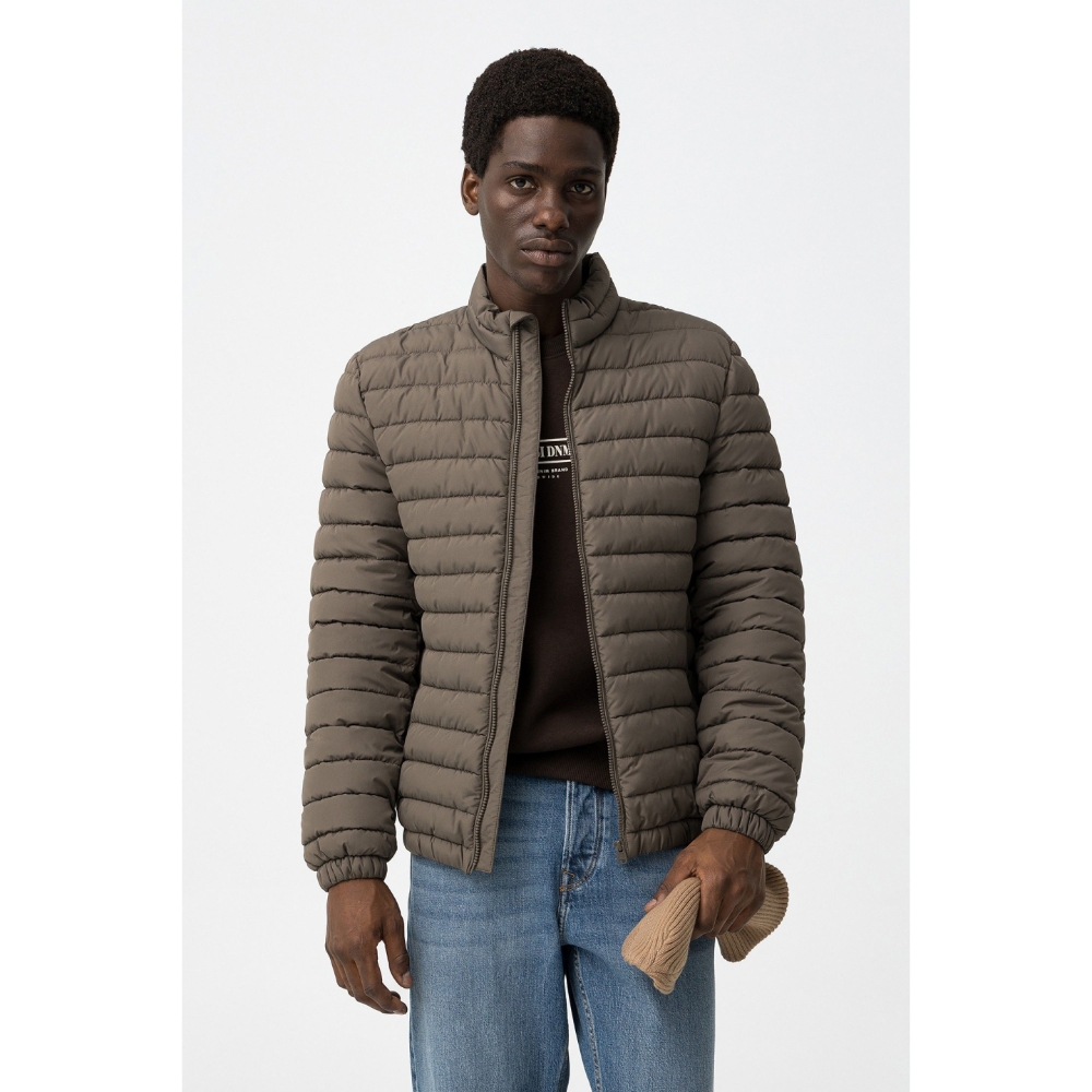 Chaqueta regular fit acolchada, con dos bolsillos frontales y cierre de cremallera. Manga larga y acabado interior elástico en bajo y puños.