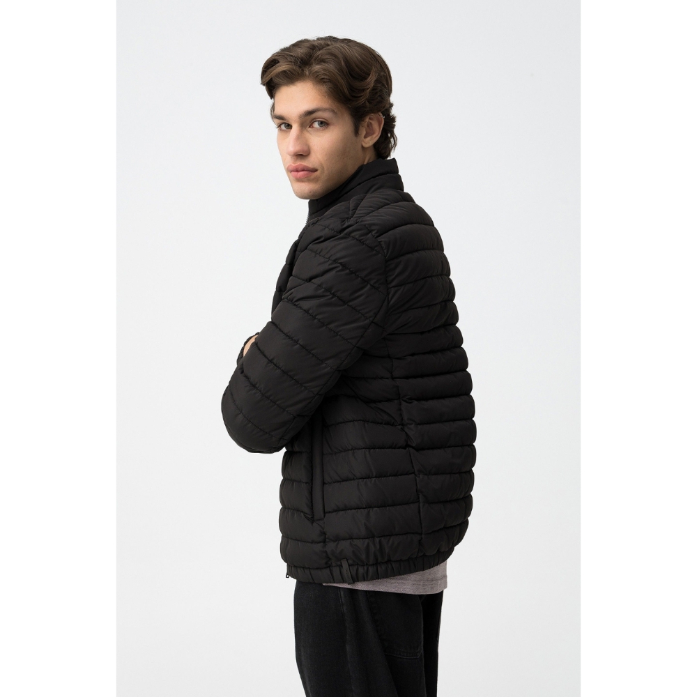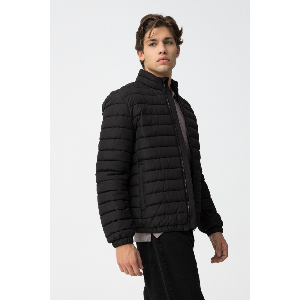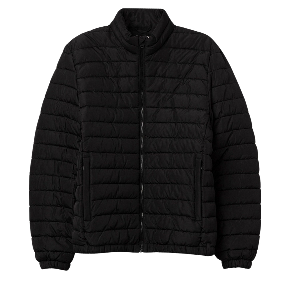 Chaqueta regular fit acolchada, con dos bolsillos frontales y cierre de cremallera. Manga larga y acabado interior elástico en bajo y puños.