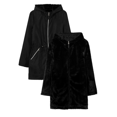 Chaqueta de capucha y manga larga. Bolsillos laterales. Cierre frontal con cremallera. Cordón ajustable en la cintura.