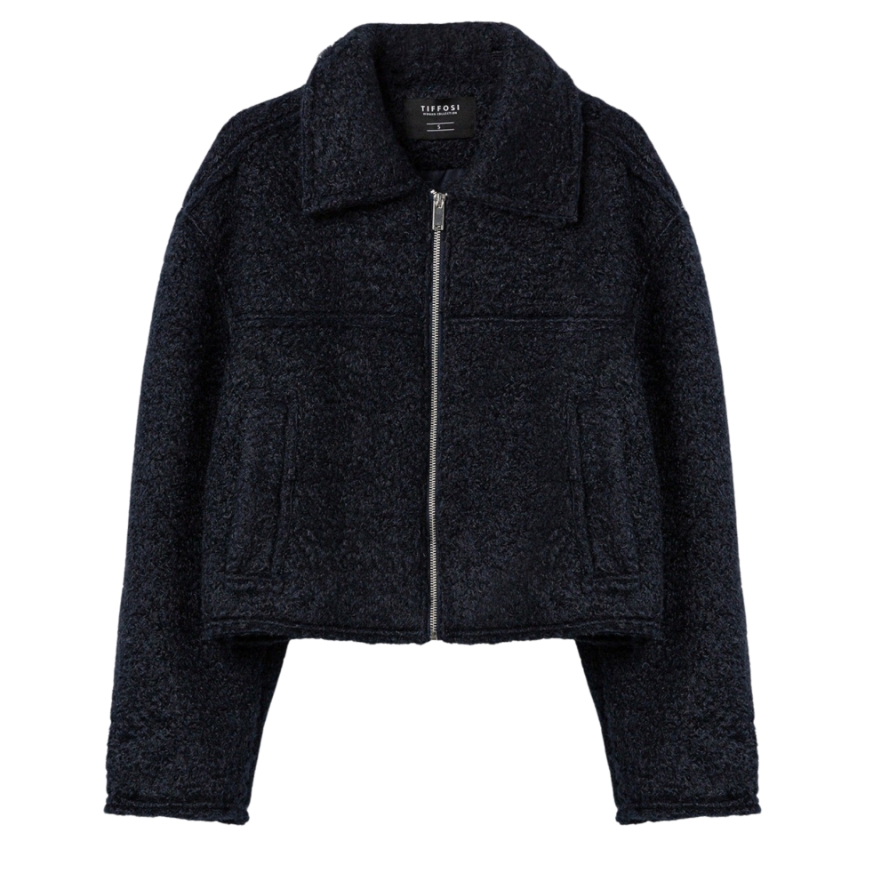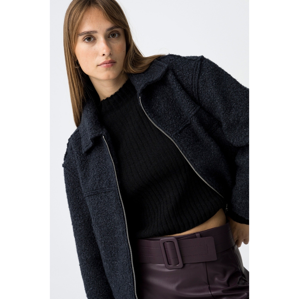 Chaqueta corta bouclé, relaxed fit, con dos bolsillos de ribete delanteros. Cuello, abertura frontal con cierre de cremallera y manga larga.100% POLYESTER