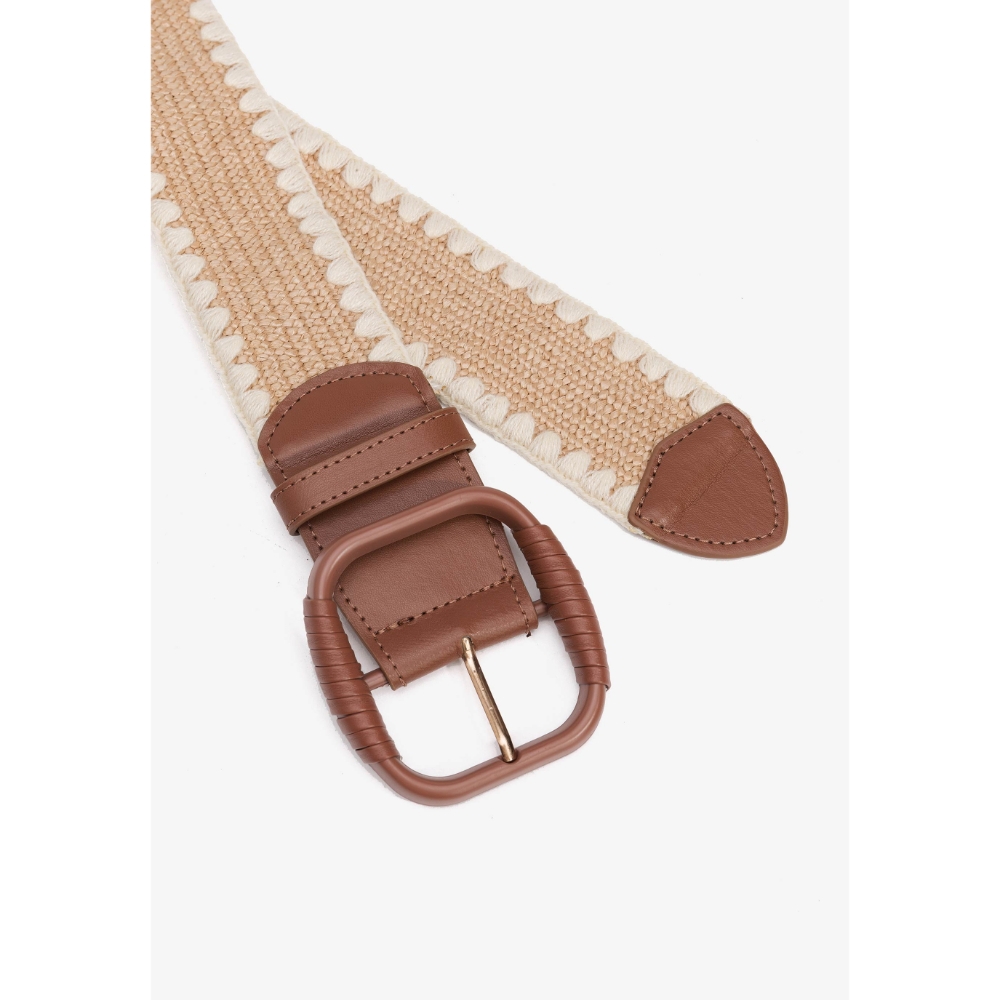 Cinturón combinado efecto paja, con efecto piel a contraste y hebilla redondeada.40% POLYPROPYLENE 40% ELASTANE 10% COTTON 10% POLY