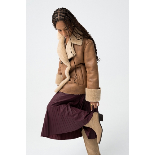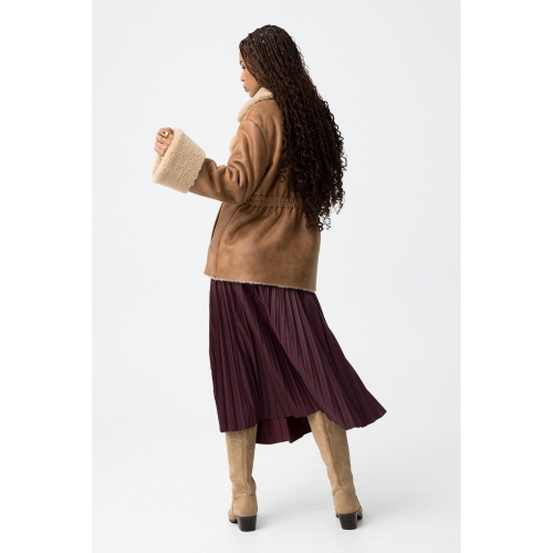 Falda midi plisada efecto piel, con cierre de cremallera lateral.100% POLYURETHANE