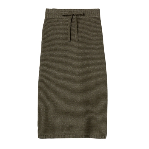 Falda midi regular fit de punto canalé, con abertura en el bajo y cintura elástica con cordón ajustable.75% ACRYLIC 22% POLYESTER 3% ELASTANE