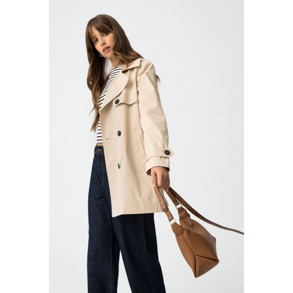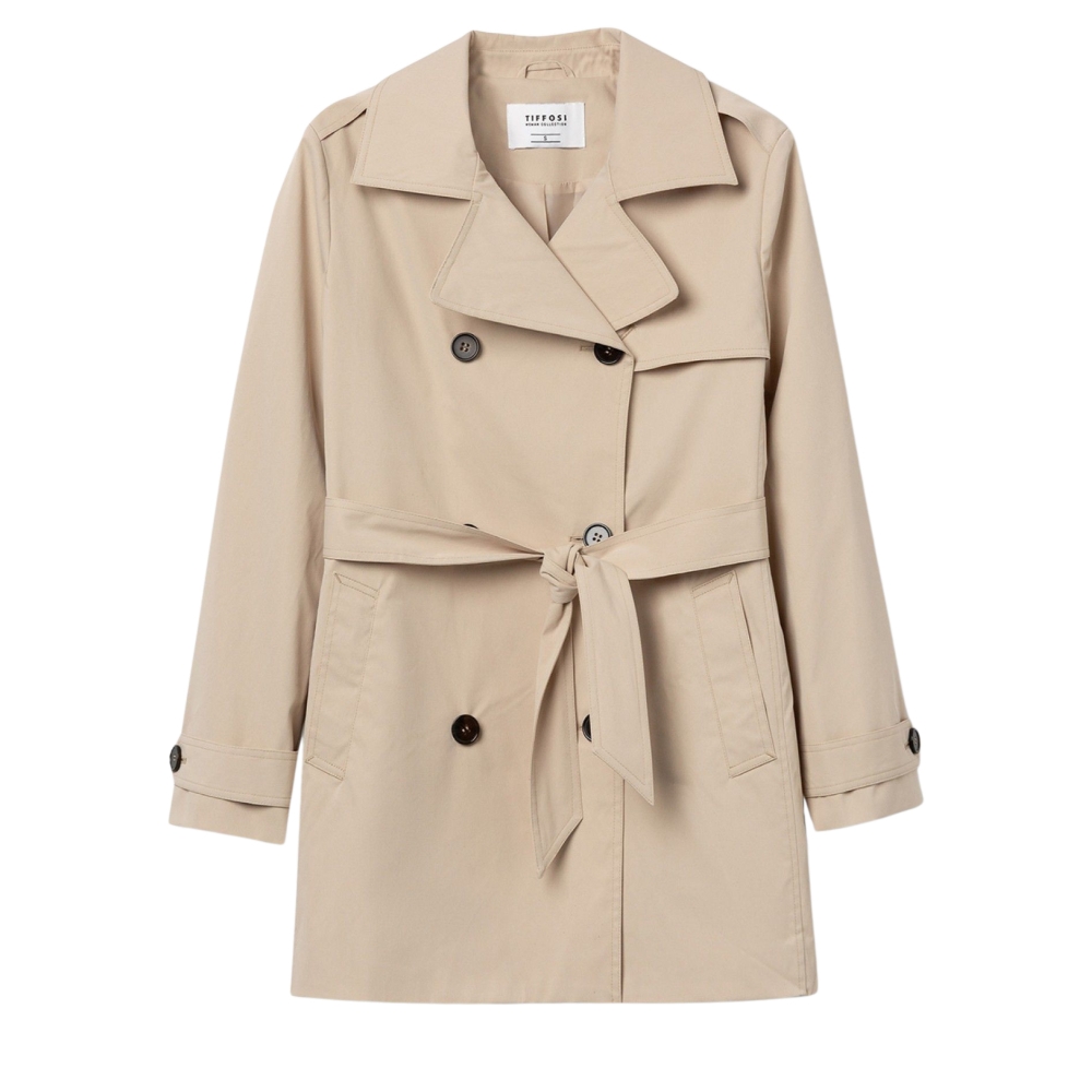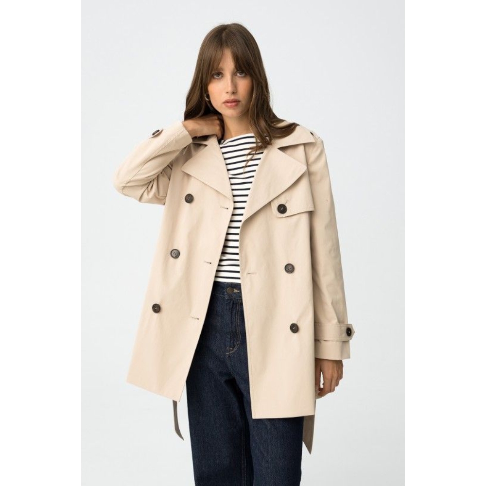 Gabardina regular fit, con cinturón removible y dos bolsillos frontales. Cuello con solapa dentada, cruzado doble con cierre de botón y manga larga.100% POLYESTER