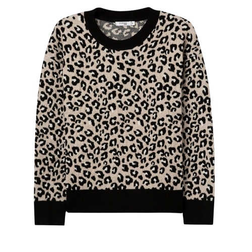 Jersey relaxed fit de Jacquard con estampado animal, cuello redondo, manga larga y acabados de canalé.52% VISCOSE 28% POLYESTER 20% POLIAMIDE