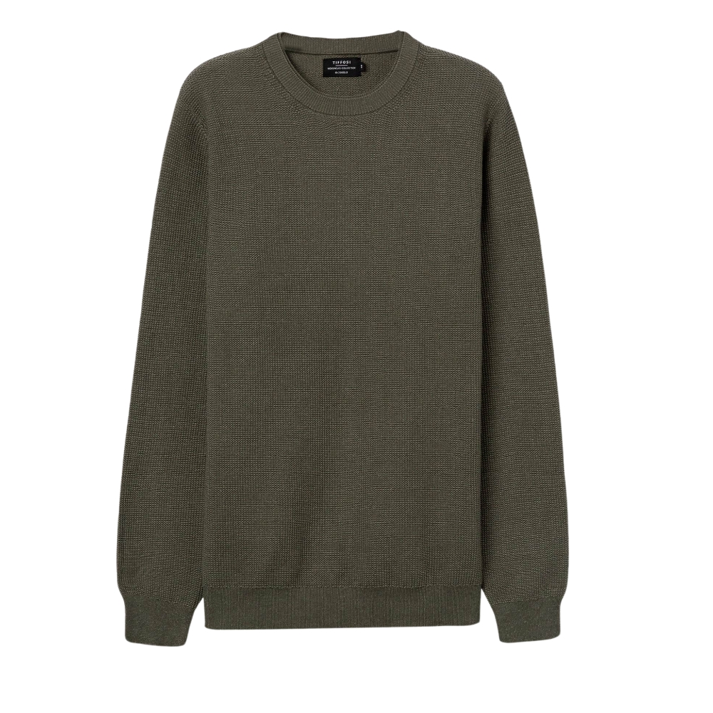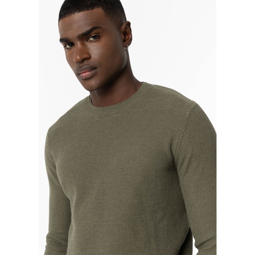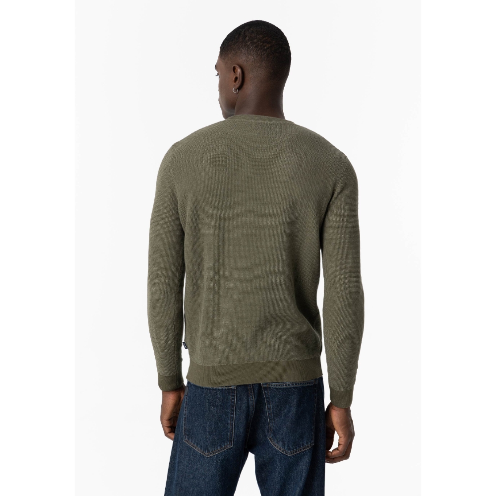 Jersey de punto con textura de cuello redondo doble y manga larga.