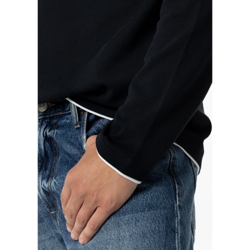 Camiseta slim fit combinada con textura de cuello redondo y manga larga.