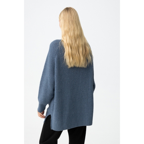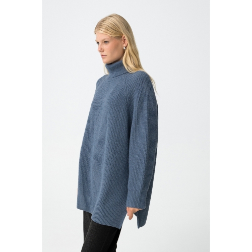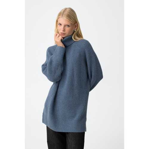 Jersey de punto grueso con corte oversized. Cuello alto y mangas largas con sisa caída. Acabados en rib en cuello, puños y bajo.