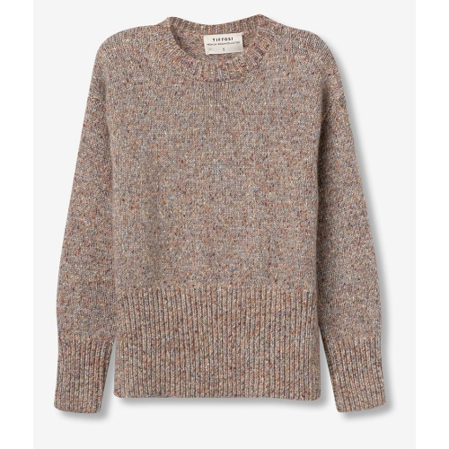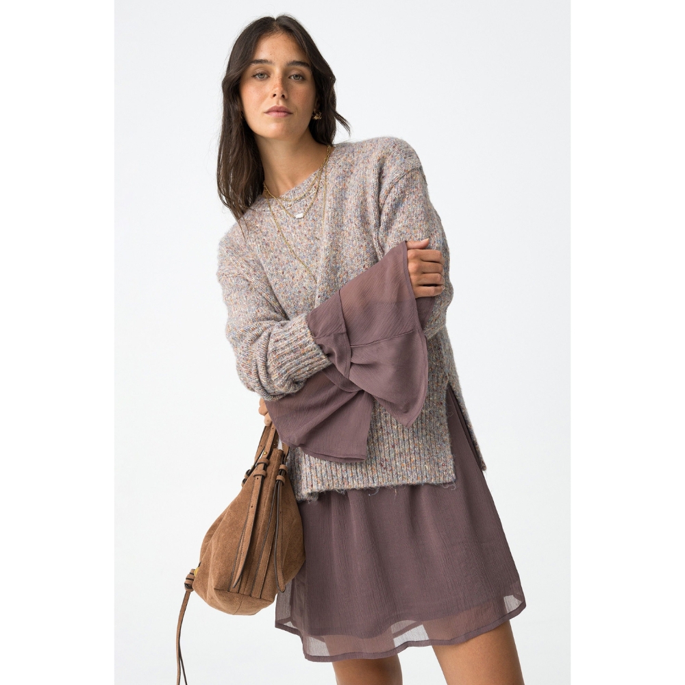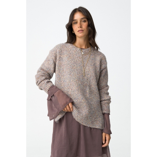 Jersey regular fit de punto con lana, hilo metálico insertado y lentejuelas. Cuello redondo, manga larga, acabados de canalé y bajo con aberturas laterales.